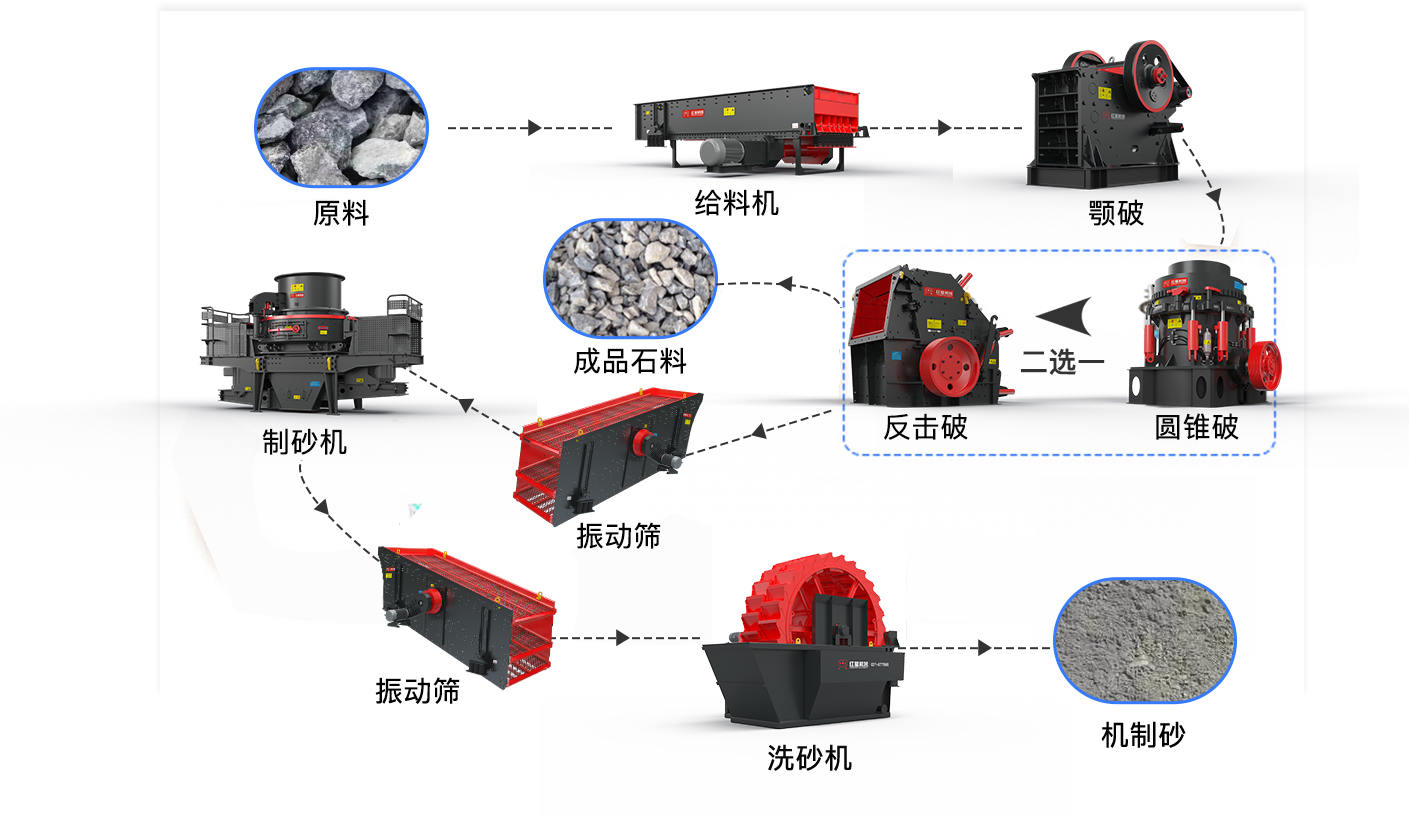 給料機(jī)、鄂破、反擊破、圓錐破、制砂機(jī)、振動篩、洗砂機(jī)、皮帶輸送機(jī)、集中電控設(shè)備等